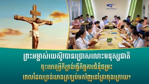 ក្នុងយុគសម័យនៃព្រះគុណ ព្រះអម្ចាស់យេស៊ូវផ្ទាល់ព្រះអង្គត្រូវបានគេឆ្កាង ក្លាយជាតង្វាយលោះបាបរបស់មនុស្សជាតិ និងប្រោសលោះមនុស្សជាតិពីបាប។ តាំងពីនោះមក បាបរបស់មនុស្សត្រូវបានអត់ទោស ហើយព្រះជាម្ចាស់មិនទតឃើញយើងថាមានបាបទេ ដូច្នេះ យើងអាចអធិស្ឋានទៅកាន់ព្រះជាម្ចាស់ដោយផ្ទាល់ និងមកចំពោះព្រះភ័ក្ត្រទ្រង់។ ប៉ុន្តែ ការដែលព្រះជាម្ចាស់លែងទតឃើញមនុស្សមានបាបទៀតនោះ គ្រាន់តែមានន័យថា ទ្រង់បានអត់ទោសដល់យើងប៉ុណ្ណោះ មិនមានន័យមែនថា យើងគ្មានបាប យើងបរិសុទ្ធទាំងស្រុងនោះទេ។ យើងនៅតែមានធម្មជាតិដែលមានបាប និងនិស្ស័យជាសាតាំងដដែល។ យើងត្រូវតែឆ្លងកាត់កិច្ចការជំនុំជម្រះរបស់ព្រះជាម្ចាស់នៅគ្រាចុងក្រោយ ដូច្នេះសេចក្ដីពុករលួយរបស់យើងអាចត្រូវបានបន្សុទ្ធ ហើយយើងអាចត្រូវបានសង្គ្រោះដោយពេញលេញ។ កិច្ចការប្រោសលោះរបស់ព្រះជាម្ចាស់នៅយុគសម័យនៃព្រះគុណ បានត្រួសត្រាយផ្លូវសម្រាប់កិច្ចការជំនុំជម្រះរបស់ទ្រង់នៅគ្រាចុងក្រោយ។ ពោលគឺ កិច្ចការនៃការជំនុំជម្រះរបស់ទ្រង់ ត្រូវបានធ្វើដោយផ្អែកលើមូលដ្ឋាននៃកិច្ចការនៃការប្រោសលោះរបស់ព្រះអម្ចាស់យេស៊ូវ។ កិច្ចការនៃការប្រោសលោះរបស់ព្រះជាម្ចាស់ ទើបតែបានបញ្ចប់ពាក់កណ្តាលនូវកិច្ចការសង្គ្រោះទាំងមូលរបស់ទ្រង់ប៉ុណ្ណោះ។ វាជាកិច្ចការជំនុំជម្រះរបស់ព្រះដ៏មានគ្រប់ព្រះចេស្តានៅគ្រាចុងក្រោយ ដែលអាចបន្សុទ្ធ និងសង្គ្រោះមនុស្សជាតិបានពេញលេញ។ ហើយវាជាដំណាក់កាលដ៏សំខាន់បំផុតនៃកិច្ចការសង្គ្រោះរបស់ព្រះជាម្ចាស់។ យើងត្រូវឆ្លងកាត់ការជំនុំជម្រះ និងការបន្សុទ្ធរបស់ព្រះជាម្ចាស់នៅគ្រាចុងក្រោយ ហើយបានរួចផុតពីបាប និងបានបន្សុទ្ធទាំងស្រុង ហើយចុះចូលនឹងព្រះជាម្ចាស់ដោយពិតប្រាកដ និងធ្វើតាមបំណងព្រះហឫទ័យព្រះជាម្ចាស់ ដើម្បីមានតម្លៃស័ក្តិសមនឹងនគរទ្រង់។
